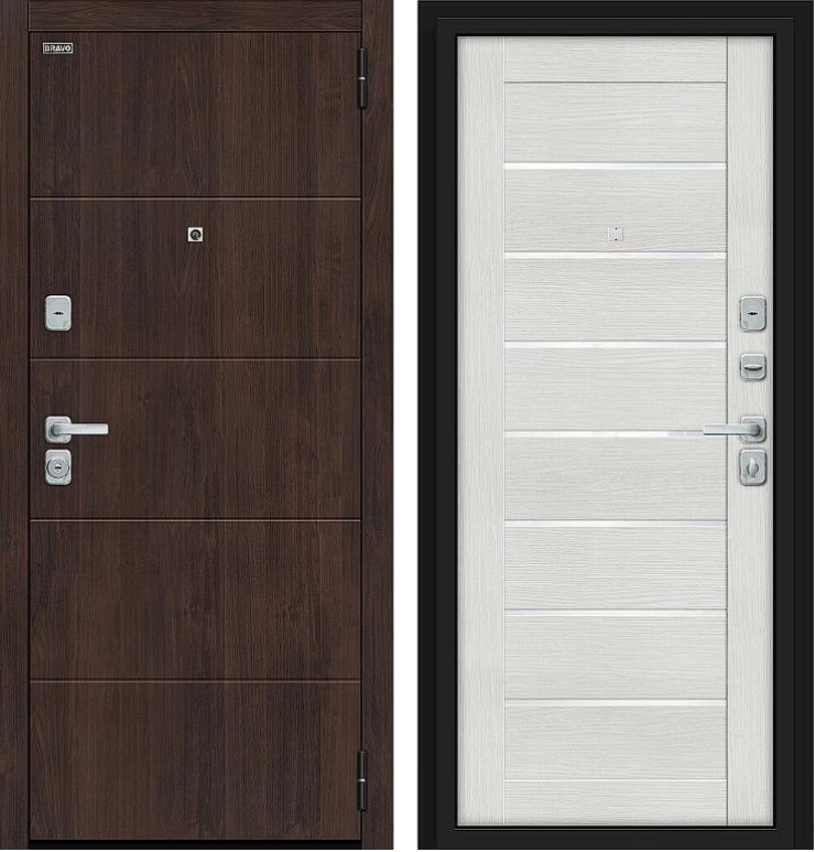 Надежная входная Дверь Браво Прайм/BChrome Almon/Bianco Melinga премиум класса по цене 40 400 руб. Большая толщина стали защитит от проникновения в ваш дом, квартиру или коттедж. Используется очень качественная фурнитура: замки, цилиндры, ручки, защелки. Покрытие и отделка двери изготовлено под внимательным контролем производителя. Дверь имеет долгий срок службы и гарантию.