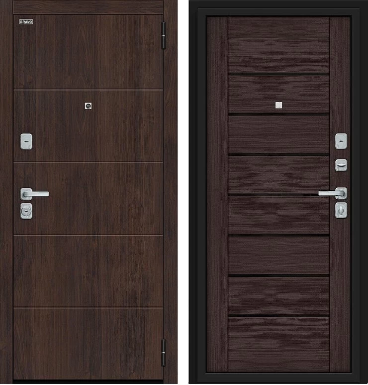 Надежная входная Дверь Браво Прайм/BChrome Almon/Wenge Melinga премиум класса по цене 40 400 руб. Большая толщина стали защитит от проникновения в ваш дом, квартиру или коттедж. Используется очень качественная фурнитура: замки, цилиндры, ручки, защелки. Покрытие и отделка двери изготовлено под внимательным контролем производителя. Дверь имеет долгий срок службы и гарантию.