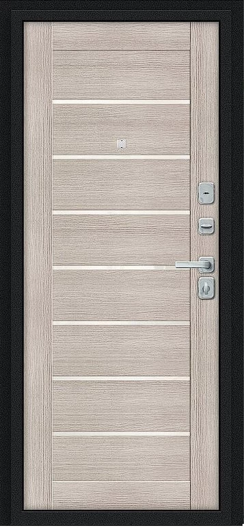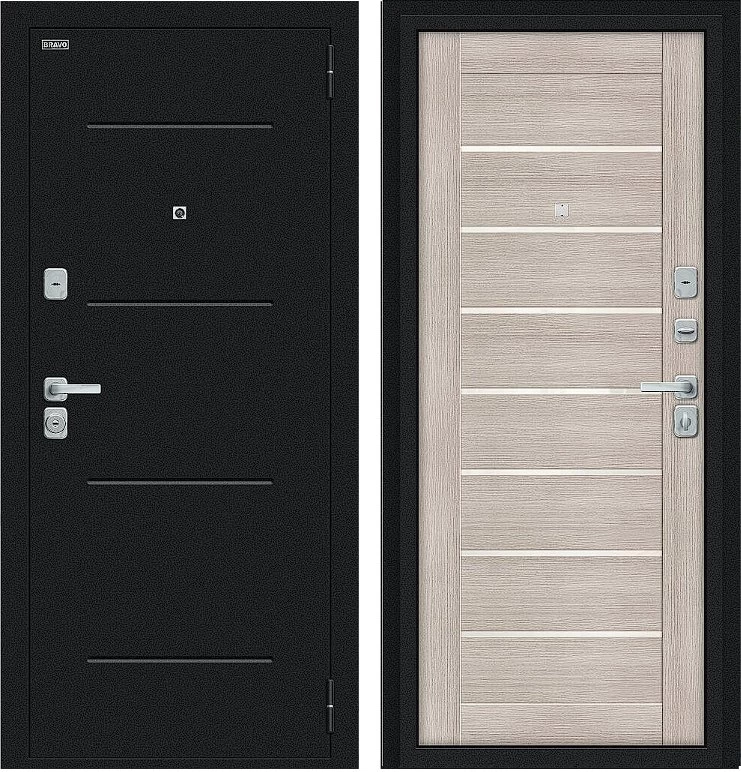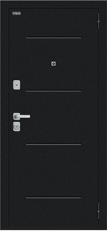 Надежная входная Дверь Браво Техно/BChrome Букле черное/Cappuccino Melinga премиум класса по цене 33 650 руб. Большая толщина стали защитит от проникновения в ваш дом, квартиру или коттедж. Используется очень качественная фурнитура: замки, цилиндры, ручки, защелки. Покрытие и отделка двери изготовлено под внимательным контролем производителя. Дверь имеет долгий срок службы и гарантию.